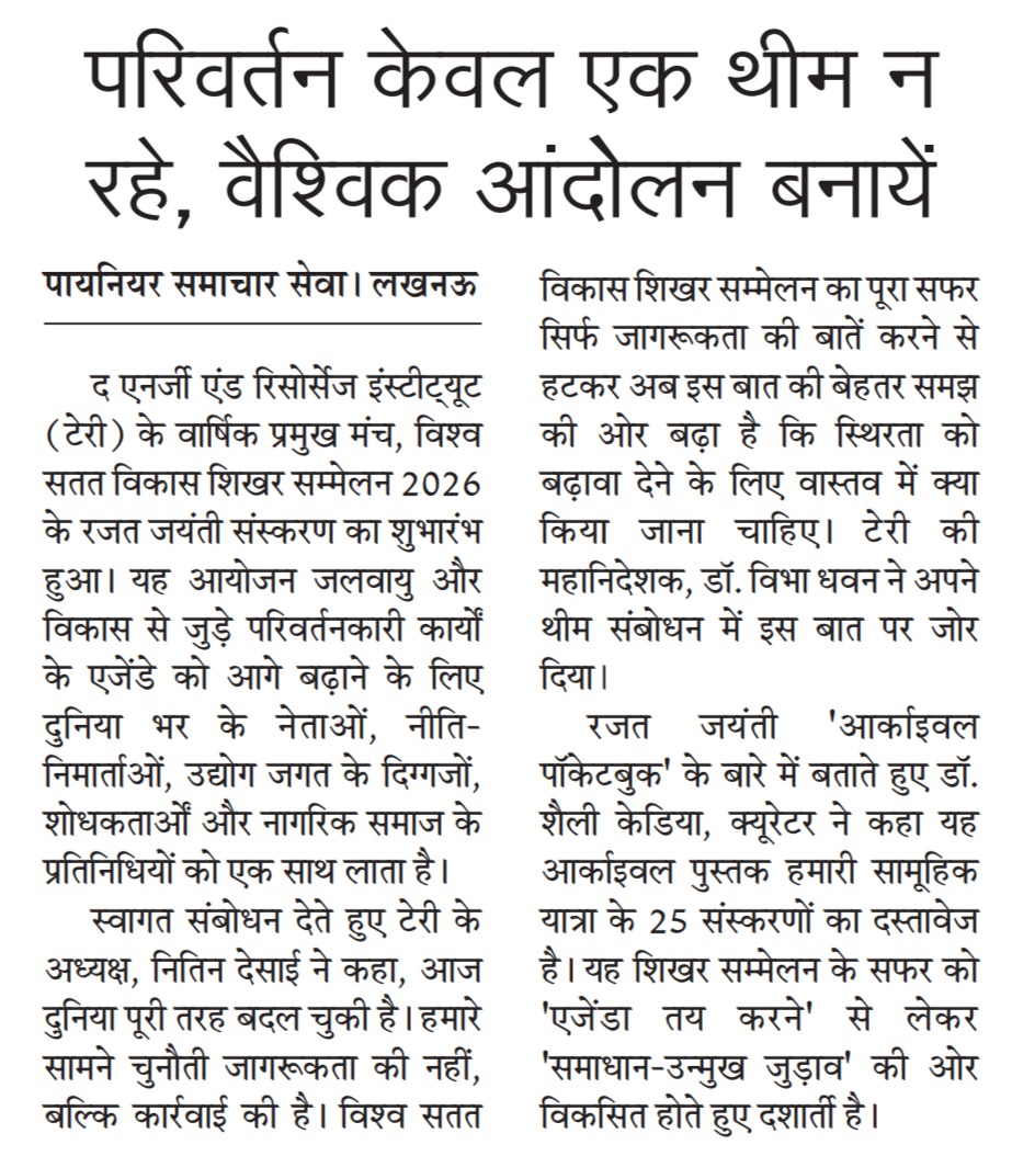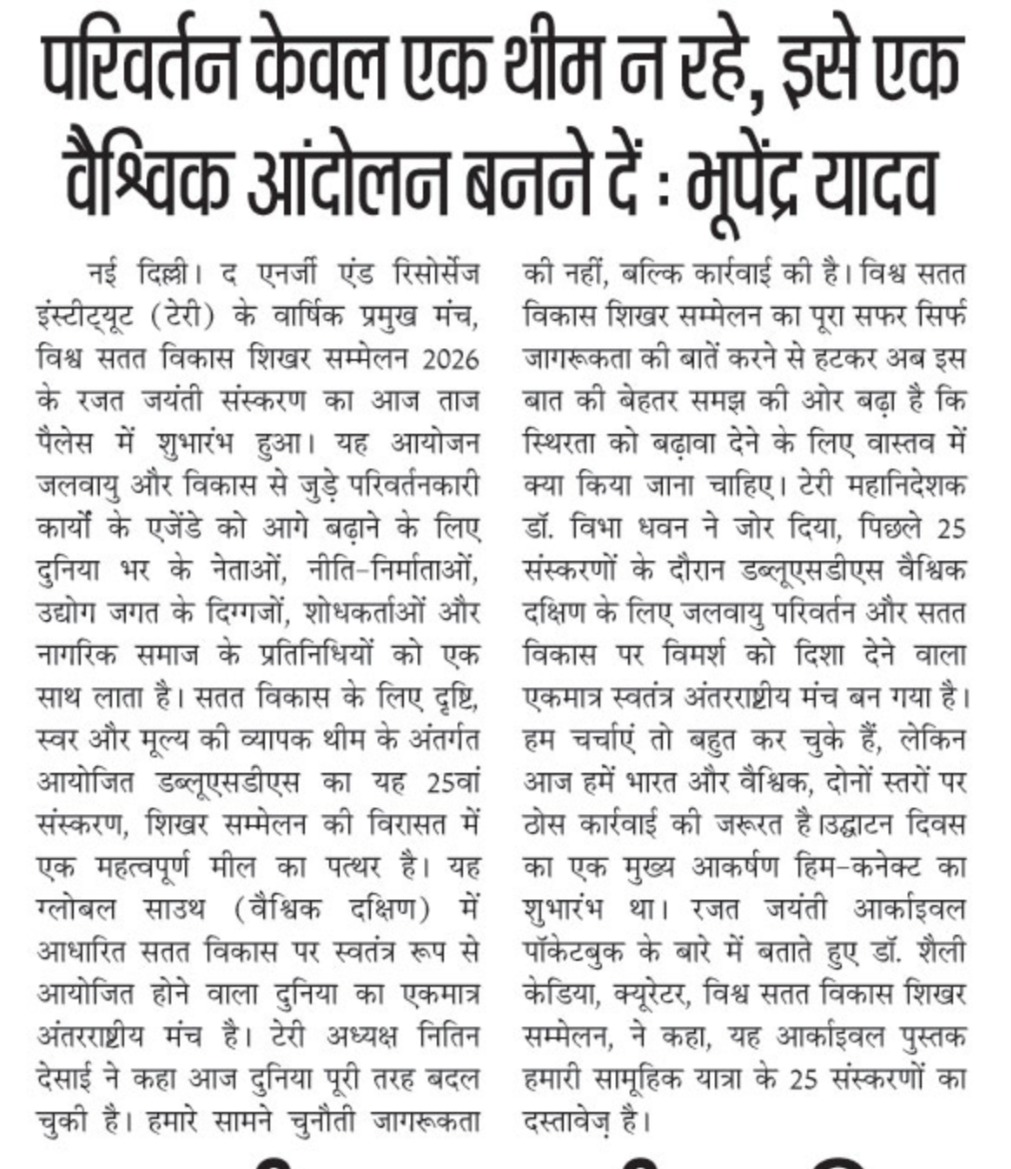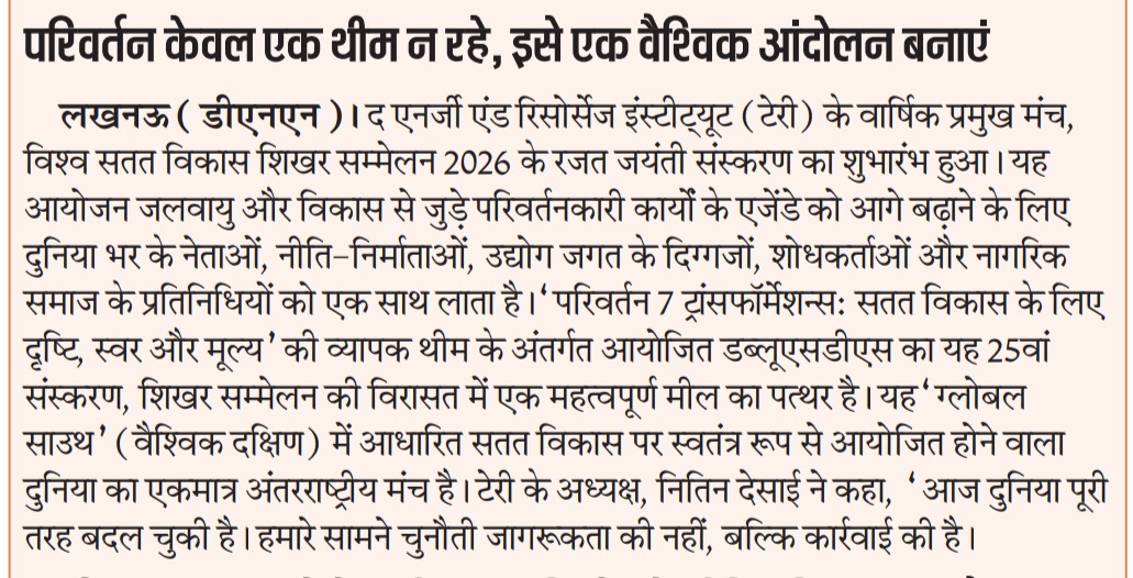 TERI WSDS 2026: From Dialogue to Transformation?