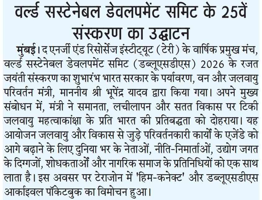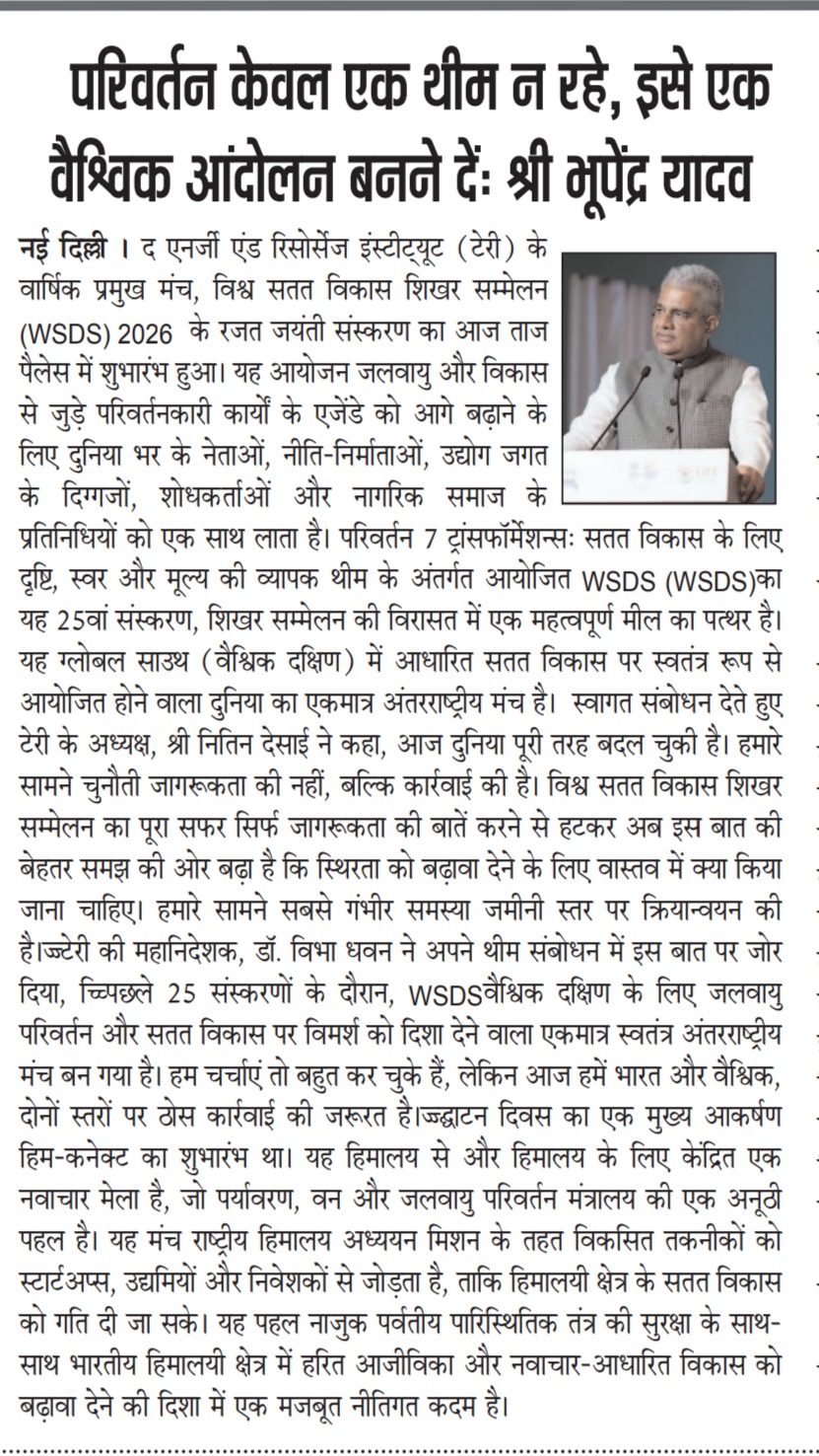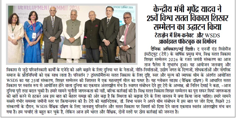 Union Environment Minister inaugurates TERI's World Sustainable Development Summit 2026 and MoEFCC’s Him-CONNECT platform