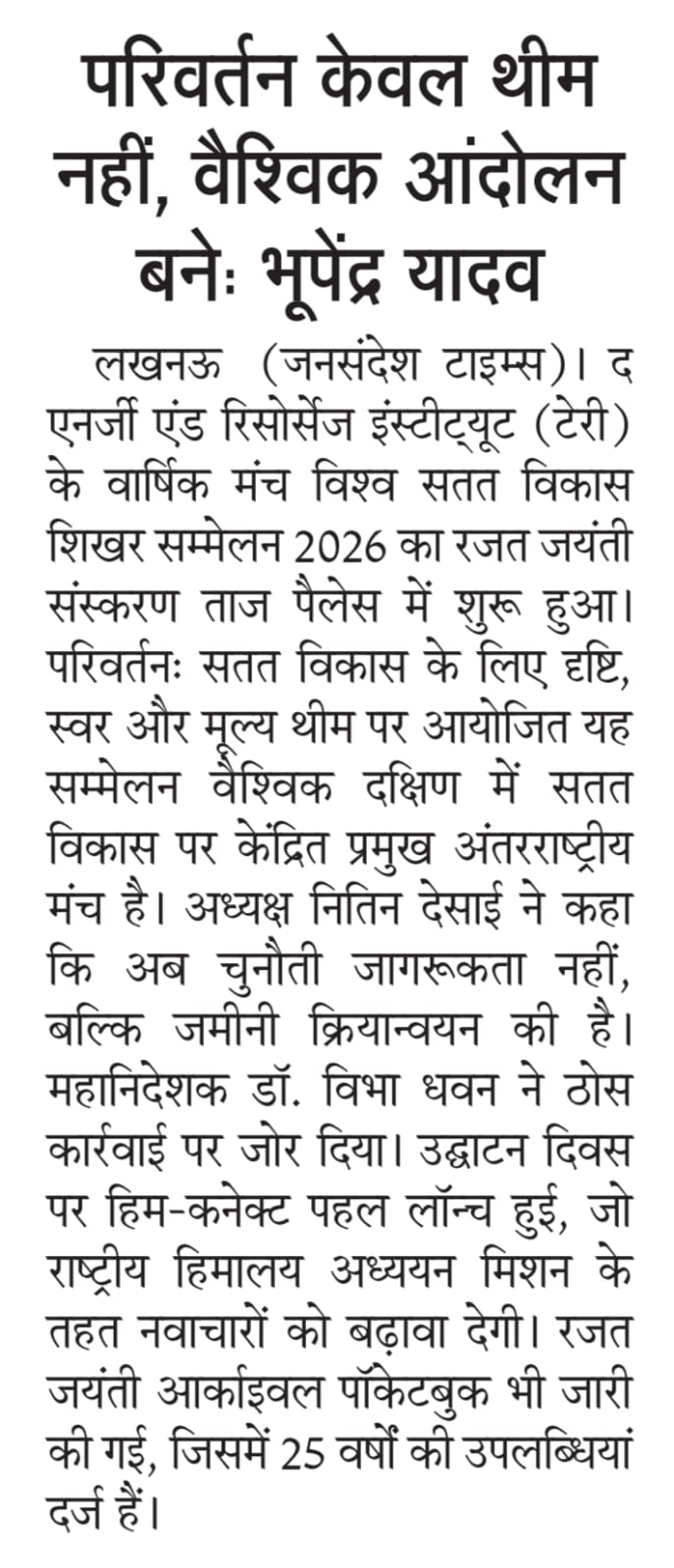 TERI hosts WSDS 2026 Bhupender Yadav calls for Action over ambition
