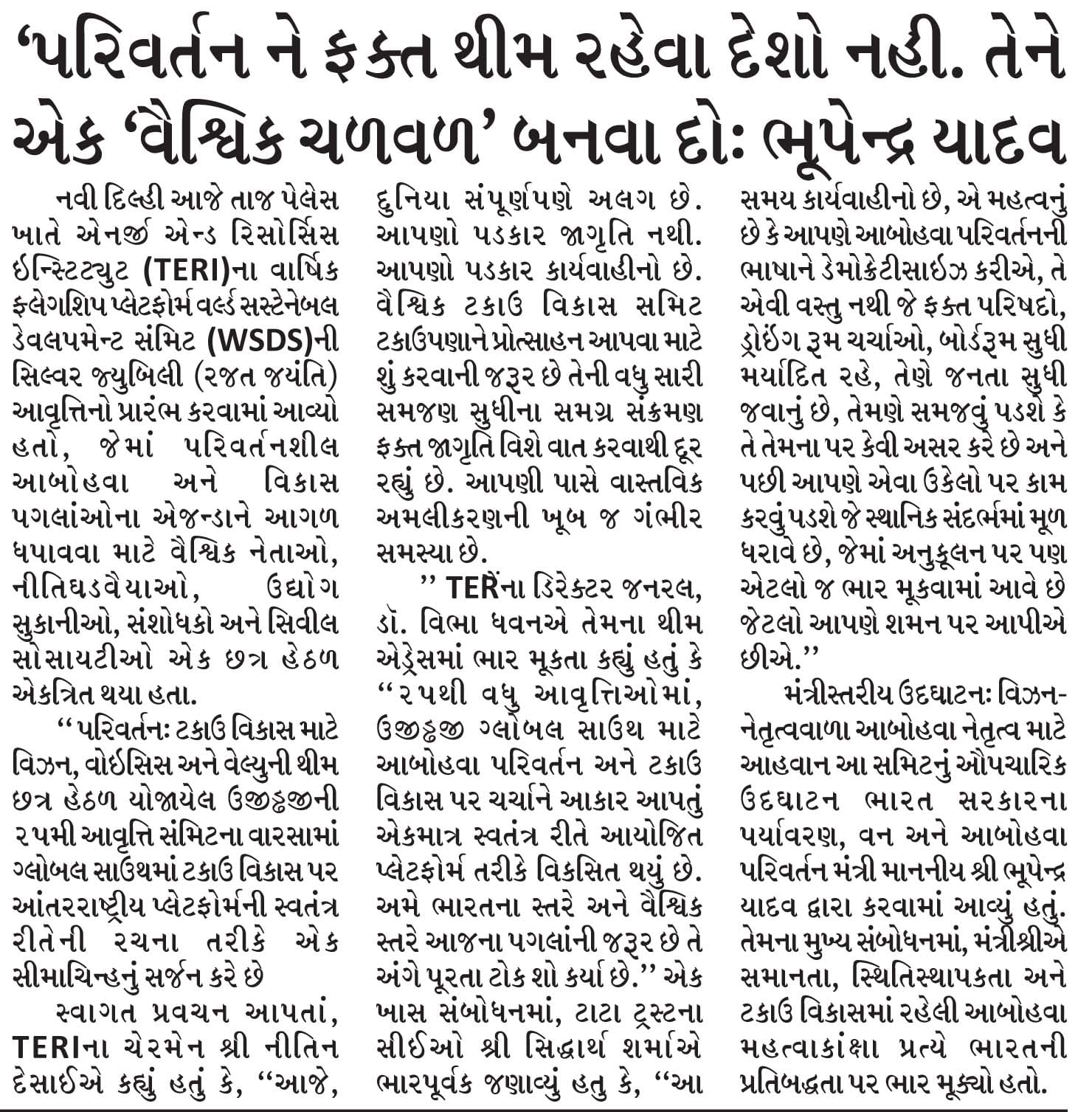 પરિવર્તન-ને-ફક્ત-થીમ-રહેવા-દેશો-નહી.-તેને-એક-વૈશ્વિક-ચળવળ'બનવા દોઃશ્રી-ભૂપેન્દ્ર-યાદવએ-વર્લ્ડ-સસ્ટેનેબલ-ડેવલપમેન્ટ-સંમિટની-રપમી-આવત્તિનં-ઉદઘાટન-કર્યાં