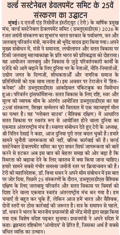 वर्ल्ड-सस्टेनेबल-डेवलपमेंट-समिट-का-सिल्वर-जुबली-संस्करण-शुरू